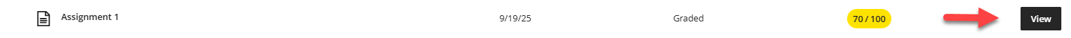 In the Gradebook, you'll see a list of graded assignments and tests. Each one will show the due date, the grading status, and your grade. Click the View button to open your submission and see any feedback your instructor has left.
