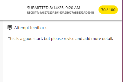 Some instructors might also leave video or audio feedback. You'll see a link to that in the right-hand pane as well.