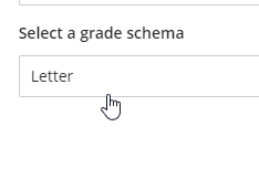 - Set it to display as Letter (or Percentage, or Points--whichever you want to use) under Select a grade schema.