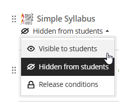 For more information about Simple Syllabus, including a recording of our faculty training session, links to user guides, and contact information to get support, please visit our Faculty Support page.
