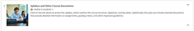 This module has the Simple Syllabus integration and the current academic calendar. You can add other items here for your students.