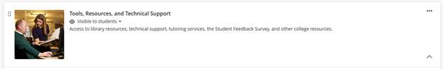 This is an important area for you and your students. It has links to technical support, library resources, Tutoring Services, and the Course Feedback Survey. We recommend that you do not delete this Learning Module.