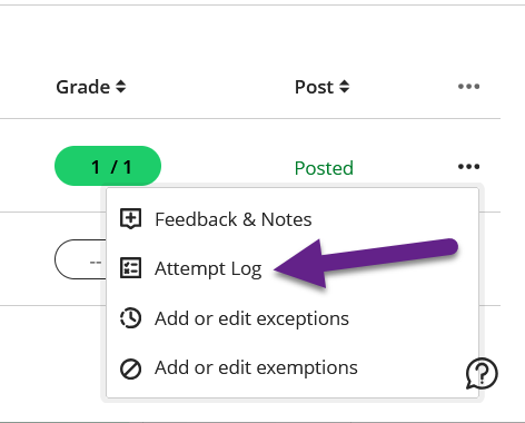 Next, click on the Submissions link and then for a specific student, click the ellipsis on the right side of their row. See image.